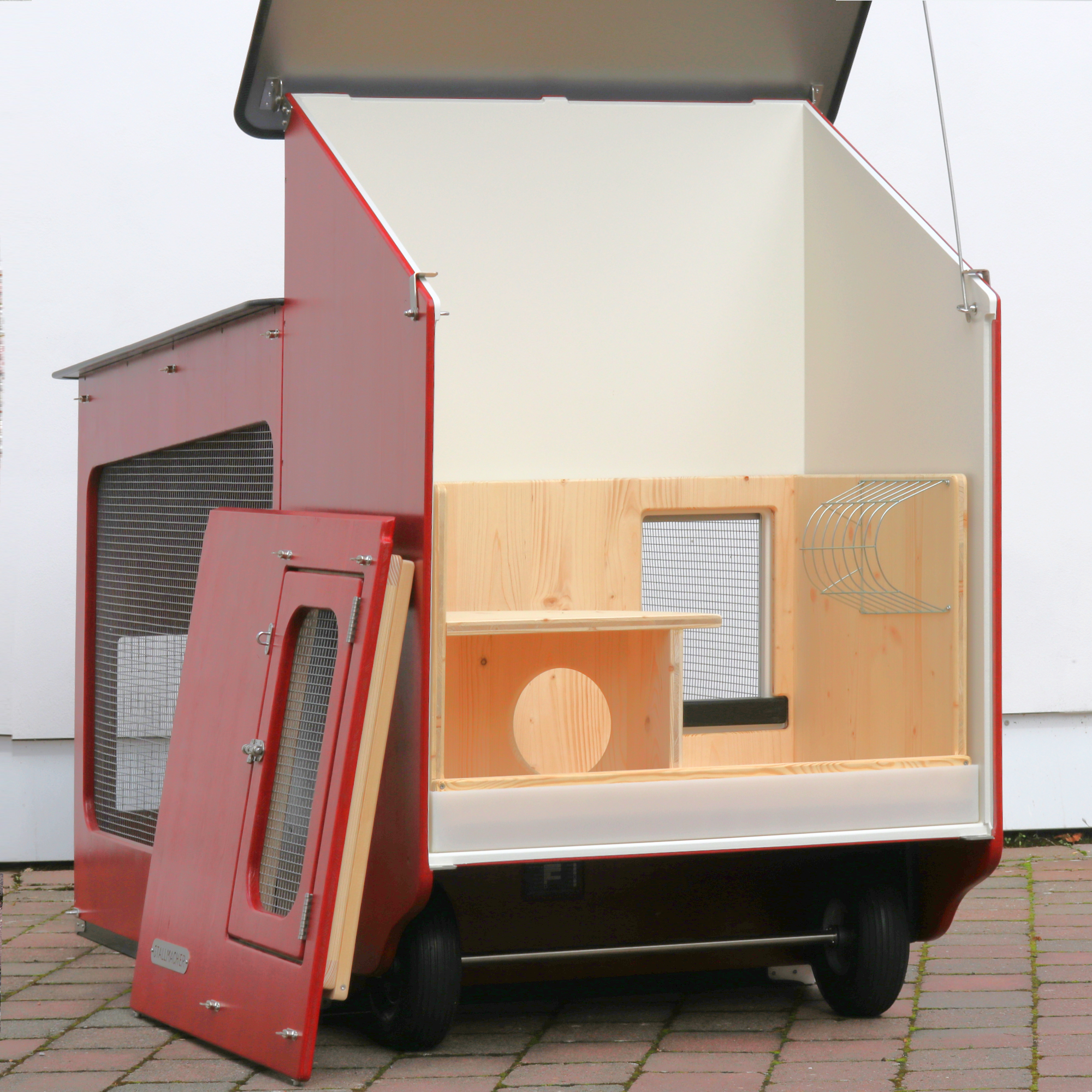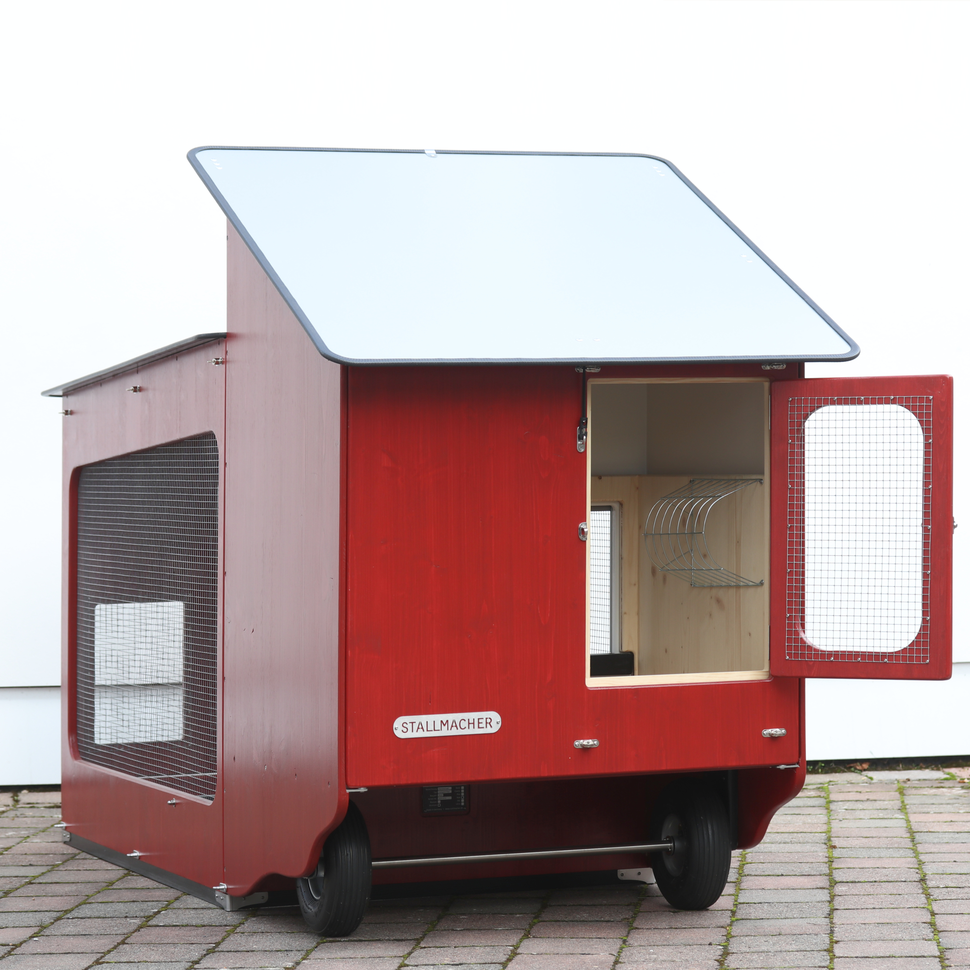 Sie kaufen den mobilen Stall inklusive kompletter Innenausstattung für die Kaninchenhaltung: