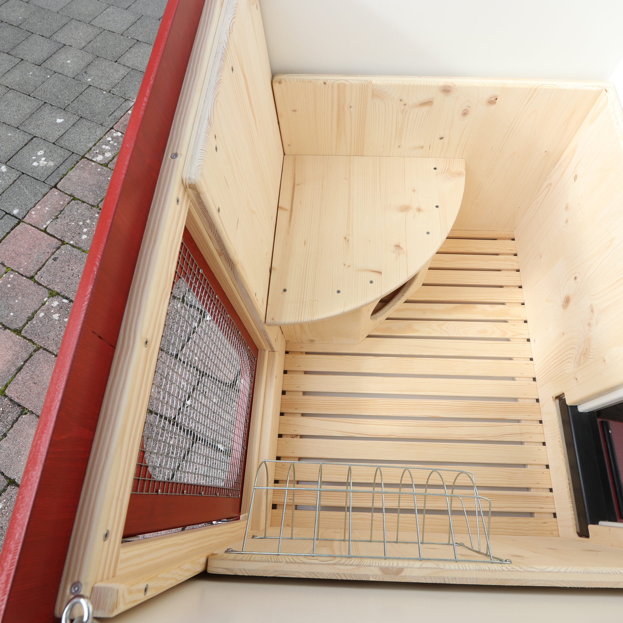 - Innenwände aus Holz (unbehandelt) als Knabber- und Pinkelschutz zum einstellen in die Kotwanne
